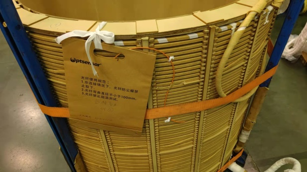 如圖所示,油浸式變壓器熒光光纖測溫系統(tǒng)由內(nèi)部光纖、法蘭盤、外部光纖、測溫主機組成,內(nèi)部光纖根據(jù)設(shè)計需求布置于繞組線圈、鐵芯、油面等部位,通過法蘭盤上的貫通器與外部光纖連接,光信號通過光纖傳導(dǎo)至測溫主機解析出測點溫度。